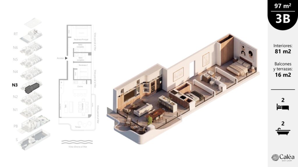 Vivir Caléa significa tener el mar a solo 100 metros y el lujo a un elevador de distancia. Disfruta del Rooftop Nivel 7, donde la piscina infinita se funde con el horizonte. Los propietarios cuentan con servicios exclusivos como ama de llaves y administración de rentas, facilitando tu inversión si vives fuera de México. Además, el edificio cuenta con Kids Club y áreas seguras para toda la familia.