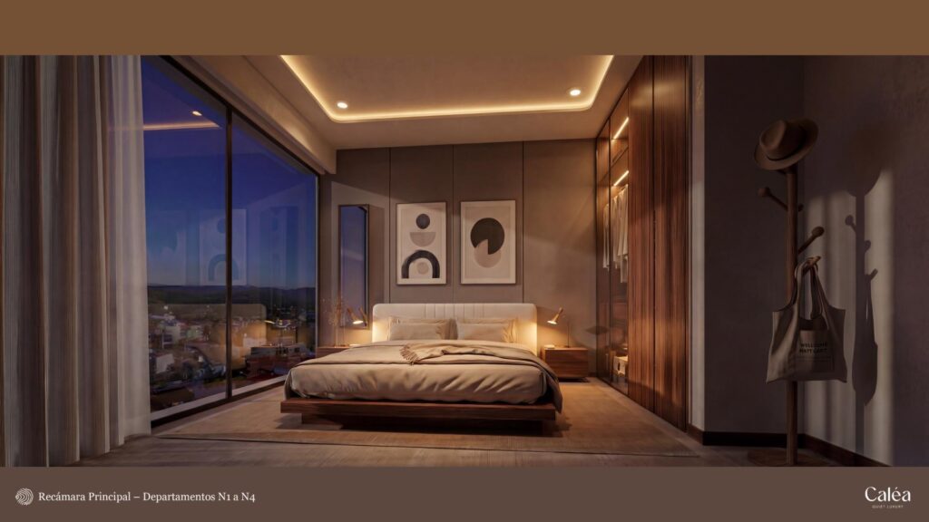 Zona de Descanso: 2 habitaciónes diseñadas como refugios de calma. La principal cuenta con baño en suite y acabados de mármol.